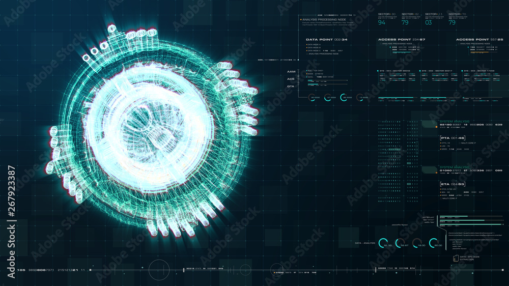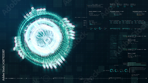 Wall mural advance motion graphic futuristic user interface head up display screen with holographic electromagn