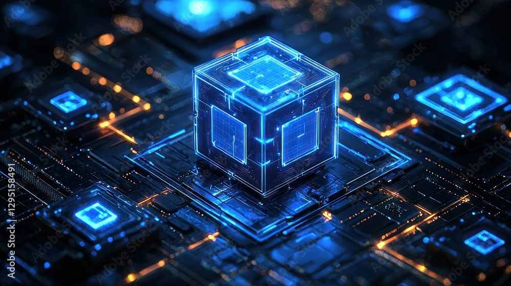 Wall mural advanced circuitry with a central cube