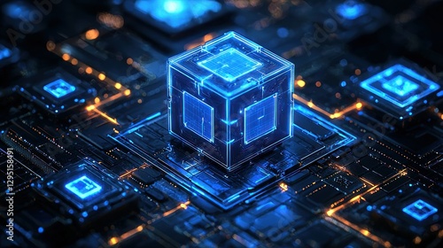 Wall mural : Advanced circuitry with a central cube