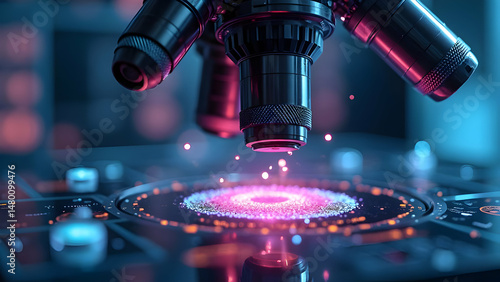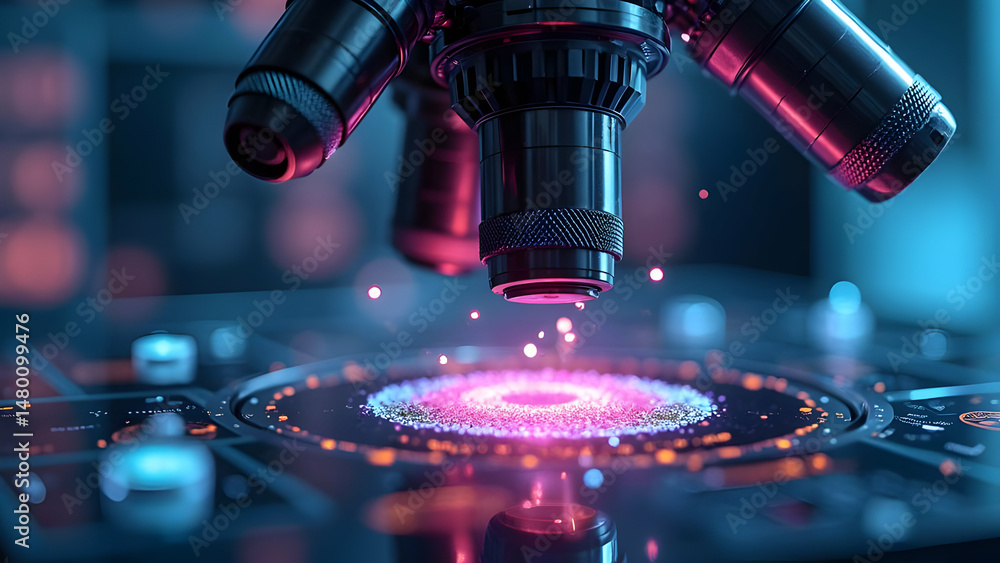 Advanced digital microscope lens array with precision optics and sophisticated mechanics focusing onWall mural