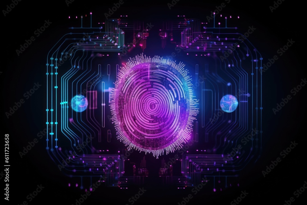 Wall mural advanced security technology, neon light background with fingerprint sensor. generative ai - Wall murals Wall mural advanced security technology, neon light background with fingerprint sensor. generative ai - Wall murals