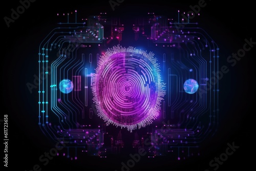 Wall mural advanced security technology, neon light background with fingerprint sensor. generative ai