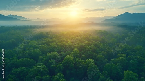 Wall mural aerial top view forest tree rainforest ecosystem and healthy environment concept background texture