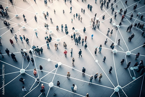 Wall mural aerial view of a crowd with a network of connections, generative ai