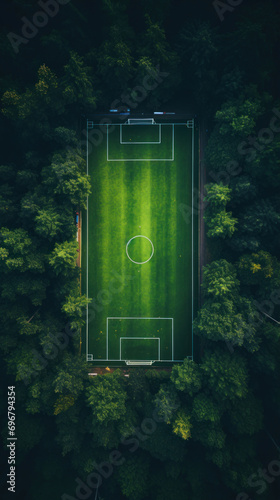Wall mural : Aerial view of a soccer field in the forest - top view