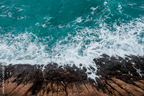 Wall mural aerial view of crashing waves on rocks. - Wall murals Wall mural aerial view of crashing waves on rocks. - Wall murals