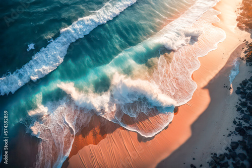 The watermark will not be included on Wall mural.: Aerial view of ocean waves at the beach - generative ai -
