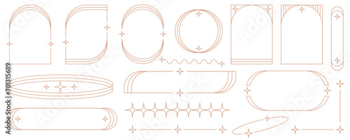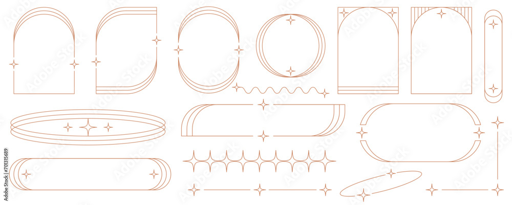 Wall mural aesthetic frame shape. outline minimal graphic elements with stars. abstract boho arches with sparkl