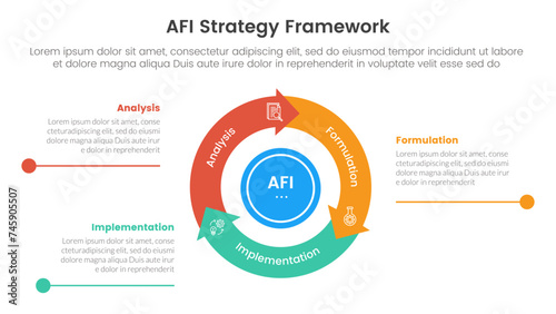 Wall mural : Afi strategy framework infographic 3 point stage template with flywheel cycle circular and arrow lin