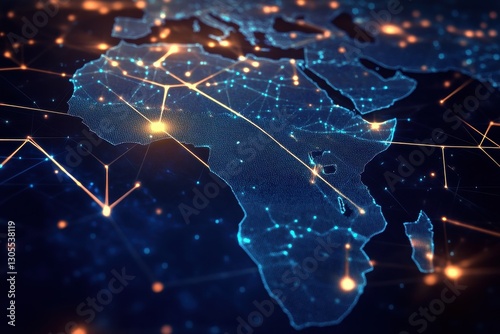 Wall mural : Africa network map with connected server nodes on a dark theme background