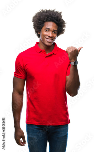 Wall mural afro american man over isolated background smiling with happy face looking and pointing to the side