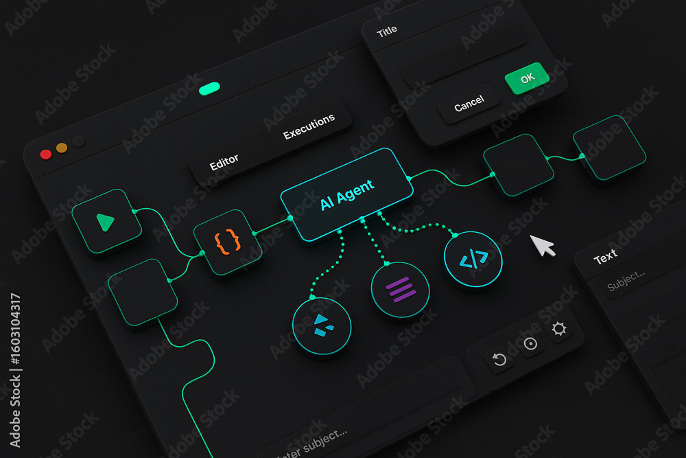 Wall mural ai agent workflow automation shown on a visual node-based editor. concept of no-code/low-code develo - Wall murals Wall mural ai agent workflow automation shown on a visual node-based editor. concept of no-code/low-code develo - Wall murals