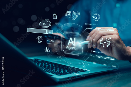 Wall mural ai agents and software interface concept,virtual assistant for customer service, futuristic smart au - Wall murals Wall mural ai agents and software interface concept,virtual assistant for customer service, futuristic smart au - Wall murals