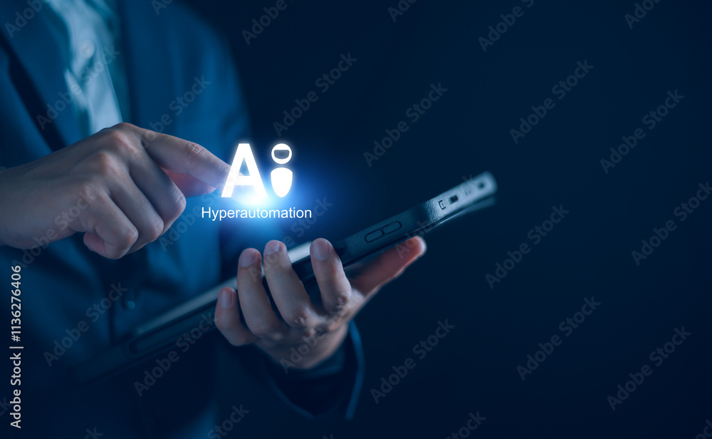 The watermark will not be included on Wall mural.: Ai and hyperautomation for business concept - businessman use technology modern automation for analys