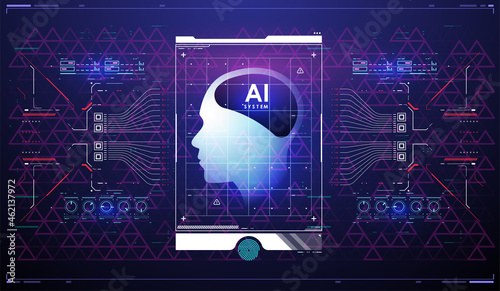Wall mural ai and technology concept. abstract glowing colorful digital brain with circuit background. futurist