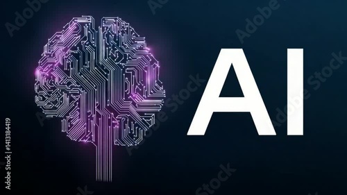 Wall mural : Ai and technology: an illuminated brain symbolizes artificial intelligence, complemented by bold "ai