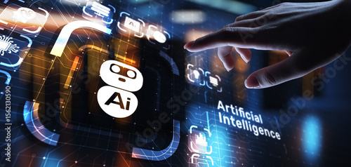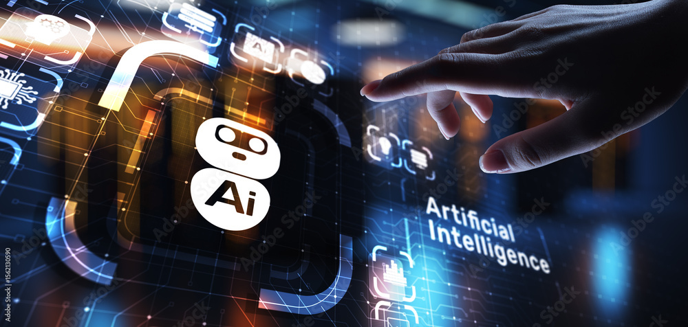 Wall mural ai artificial intelligence, machine learning, big data analysis and automation technology in busines