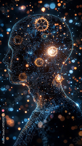 Wall mural ai artificial intelligence network digital head cogs gears technology concept - Wall murals Wall mural ai artificial intelligence network digital head cogs gears technology concept - Wall murals
