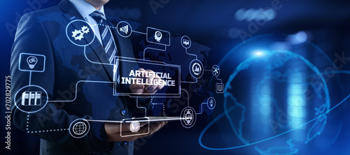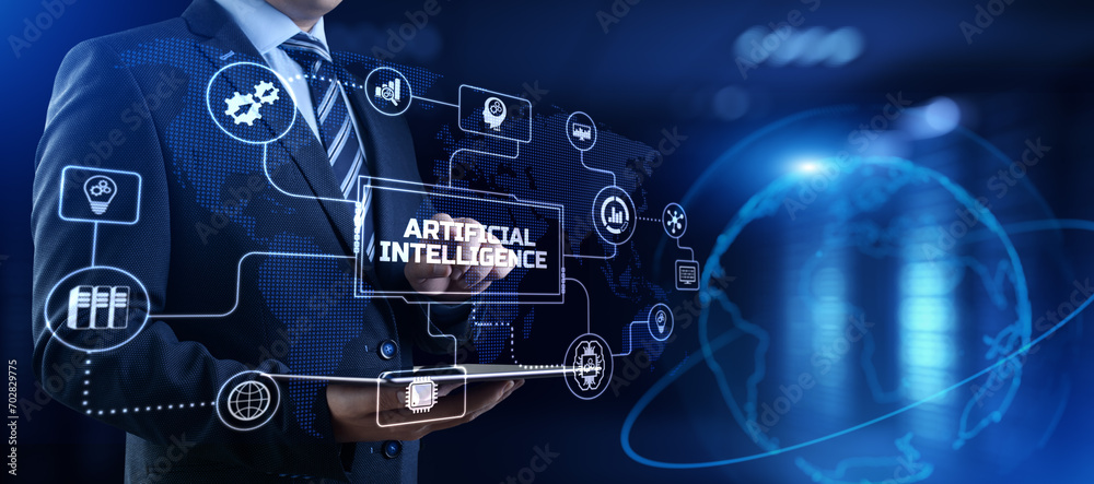 The watermark will not be included on Wall mural.: Ai artificial intelligence neural network machine learning modern technology concept - businessman pr