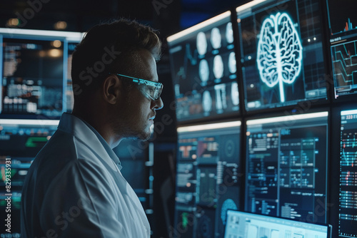 Wall mural ai artificial intelligence. business man using ai technology for data analysis coding computer langu - Wall murals Wall mural ai artificial intelligence. business man using ai technology for data analysis coding computer langu - Wall murals