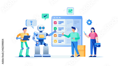 Wall mural ai automation robot working with team illustration artificial intelligence business technology conce - Wall murals Wall mural ai automation robot working with team illustration artificial intelligence business technology conce - Wall murals