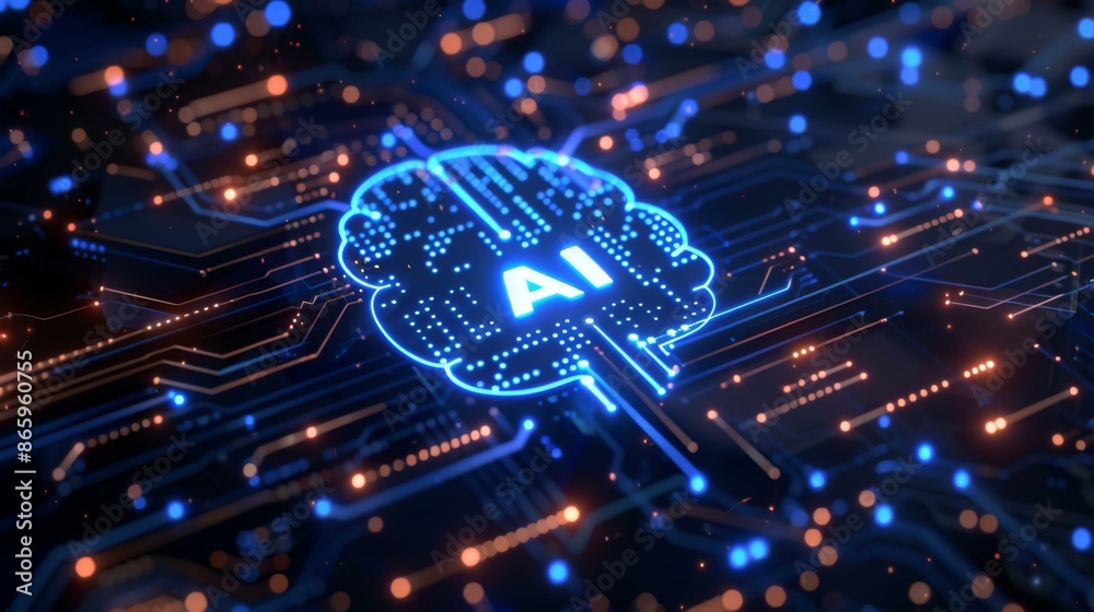 Wall mural ai brain on a circuit board with the word artificial intelligence. ai. - Wall murals Wall mural ai brain on a circuit board with the word artificial intelligence. ai. - Wall murals