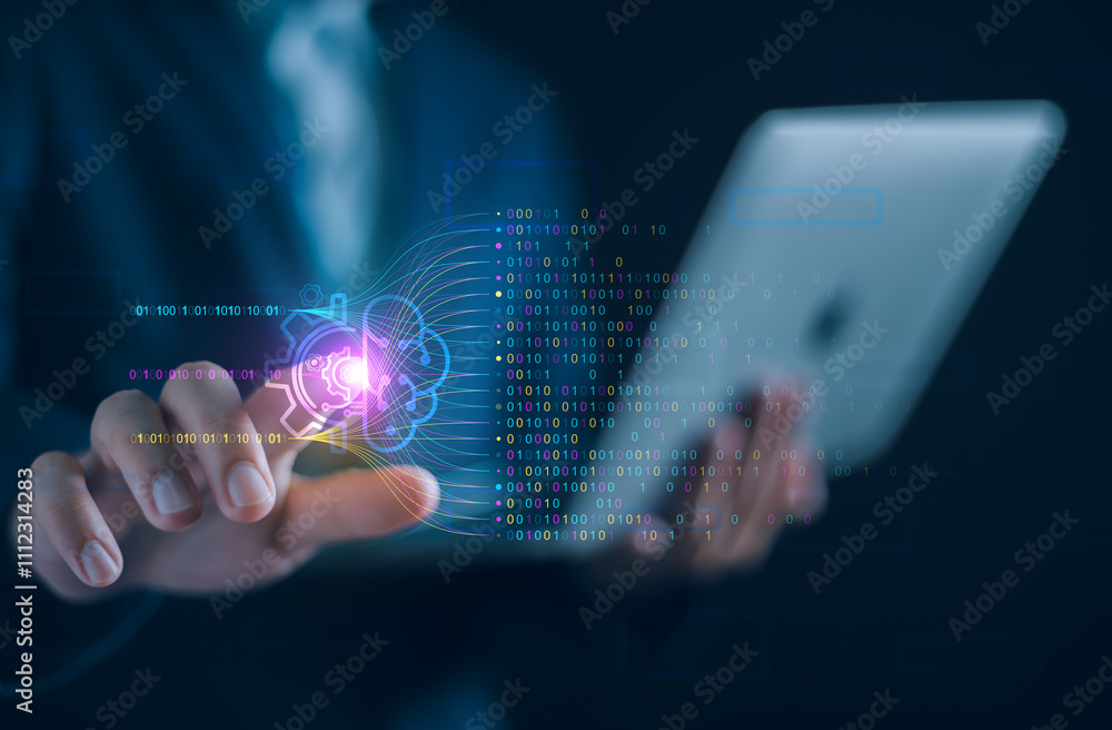 The watermark will not be included on Wall mural.: Ai business chatbot technology concept, businessman using technology smart robot intelligence, comma