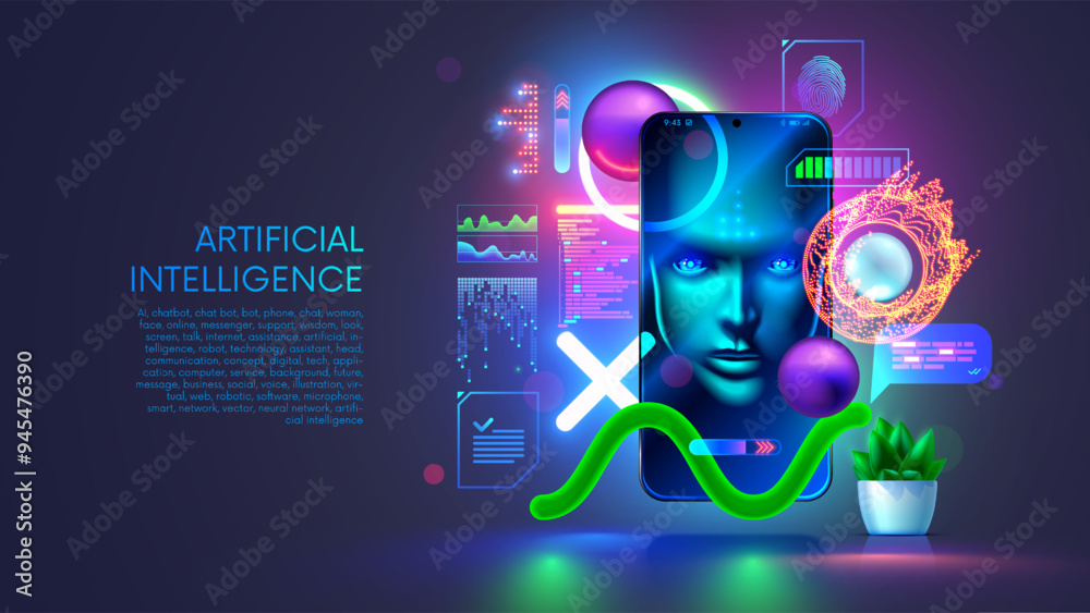 Wall mural ai chatbot in image robot or cyborg holding in hand message bubbles. online ai chat bot talk through - Wall murals Wall mural ai chatbot in image robot or cyborg holding in hand message bubbles. online ai chat bot talk through - Wall murals
