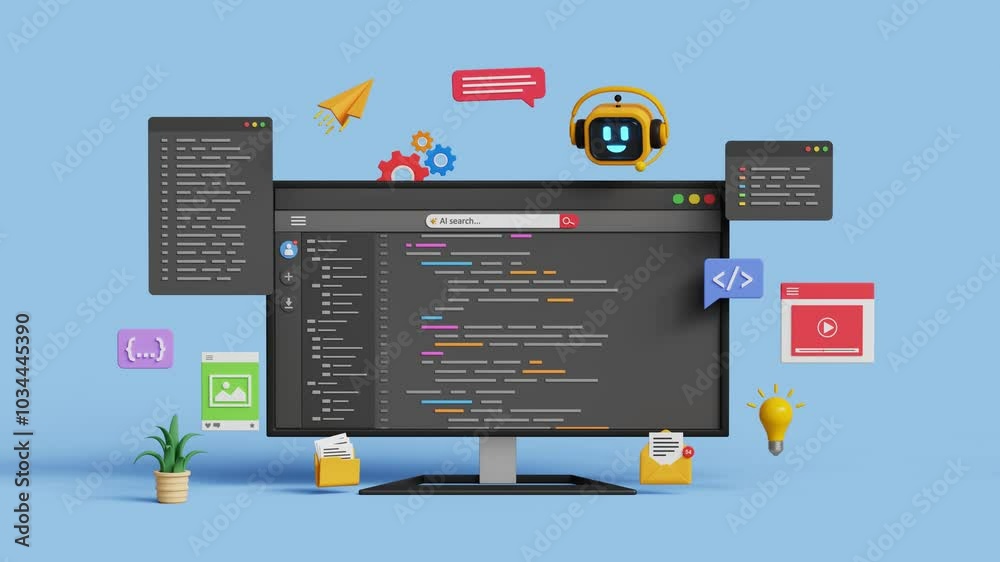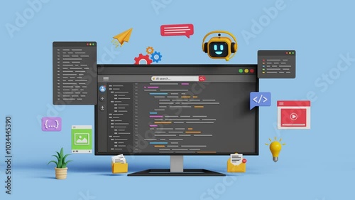 Wall mural ai code assistant or web development. ai software technology. software development or coding process - Wall murals Wall mural ai code assistant or web development. ai software technology. software development or coding process - Wall murals