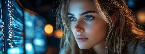 Wall mural ai cyber security concept. female it computer specialist analyzing artificial intelligence digital t - Wall murals Wall mural ai cyber security concept. female it computer specialist analyzing artificial intelligence digital t - Wall murals