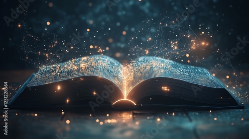 Wall mural ai-driven text generation, glowing microcircuits emerging from book pages, showcasing the transforma - Wall murals Wall mural ai-driven text generation, glowing microcircuits emerging from book pages, showcasing the transforma - Wall murals