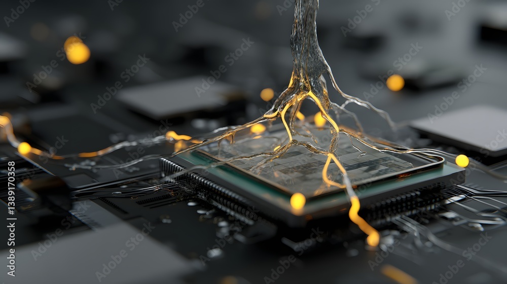 The watermark will not be included on Wall mural.: Ai efficiency at work, ultra-fast computing processors with glowing neural connections, high-perform