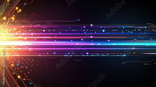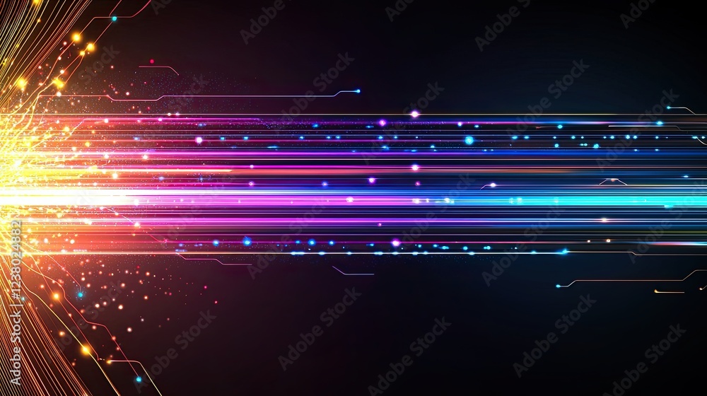 Wall mural : Ai-generated art vibrant abstract background with colorful light trails and sparkles on dark canvas