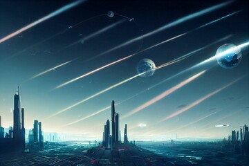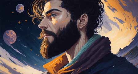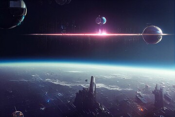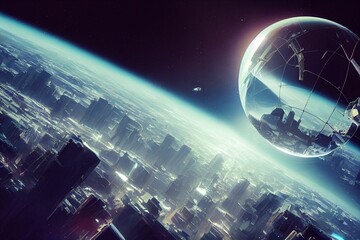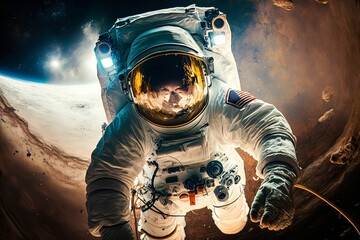 Ai generated illustration of a greyscale of an astronaut in a spacesuit in pitch darknessWall mural