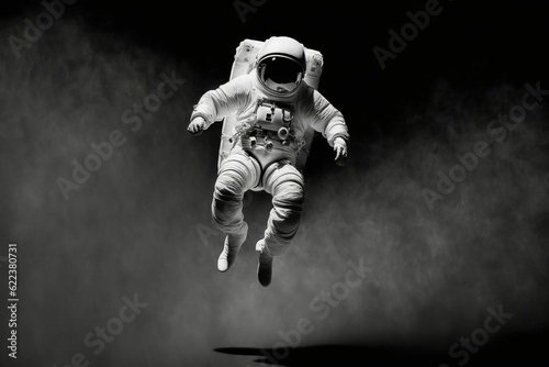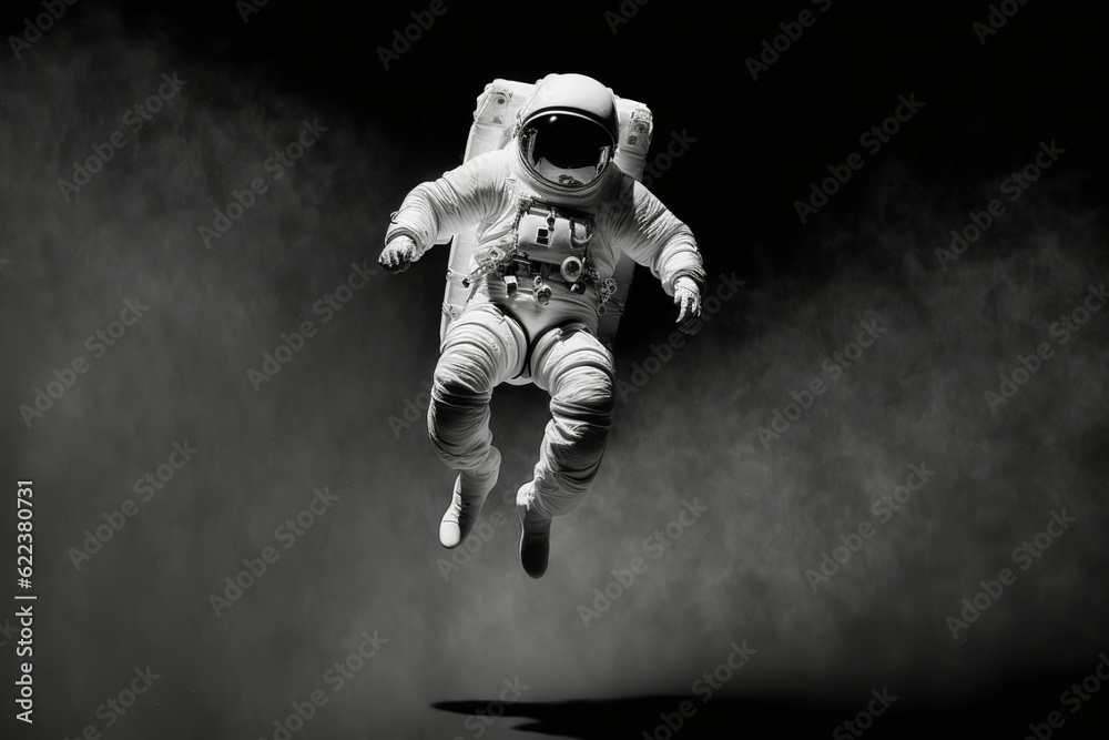 The watermark will not be included on Wall mural.: Ai generated illustration of a greyscale of an astronaut in a spacesuit in pitch darkness