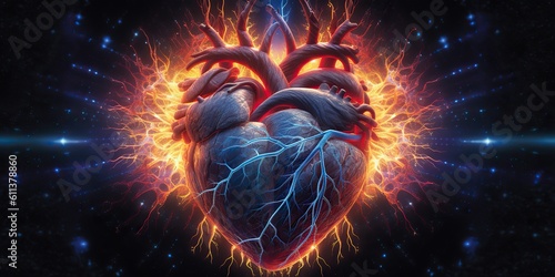 Wall mural : Ai generated - ai generative - realistic illustration of abstracct heart shape brain in galaxy space p