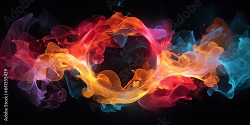 Ai generated - ai generative - round circle neon glowing color smoke mystic element - can be used for dWall mural