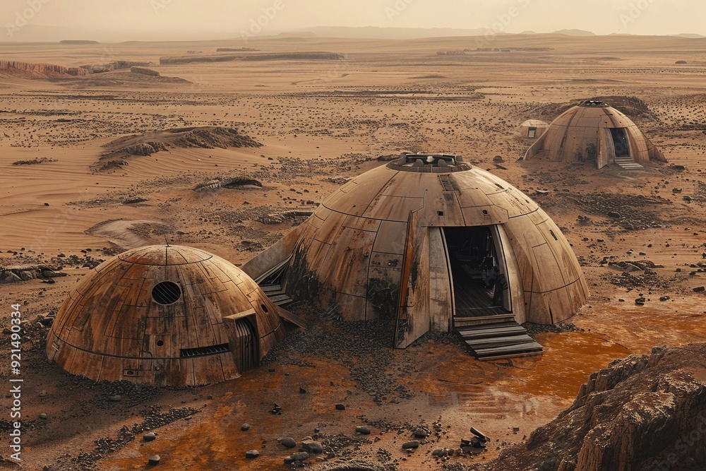 The watermark will not be included on Wall mural.: Ai generative shelter at planet mars