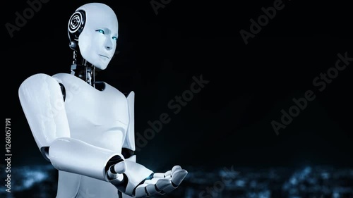Wall mural ai hominoid robot holding virtual hologram screen showing concept of ai brain and artificial intelli