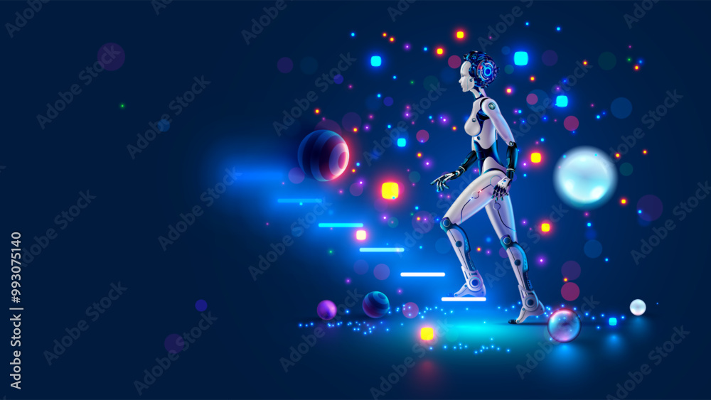 Wall mural ai or artificial intelligence learning. machine learning of artificial neural networks. woman robot  - Wall murals Wall mural ai or artificial intelligence learning. machine learning of artificial neural networks. woman robot - Wall murals
