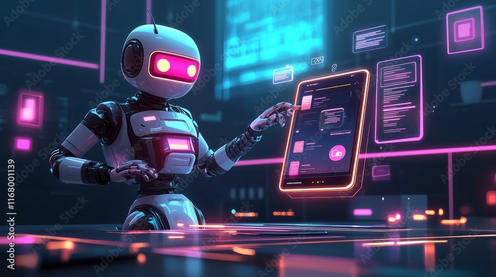 Wall mural : Ai-powered robot optimizing user experience design on a futuristic digital interface, analyzing layo