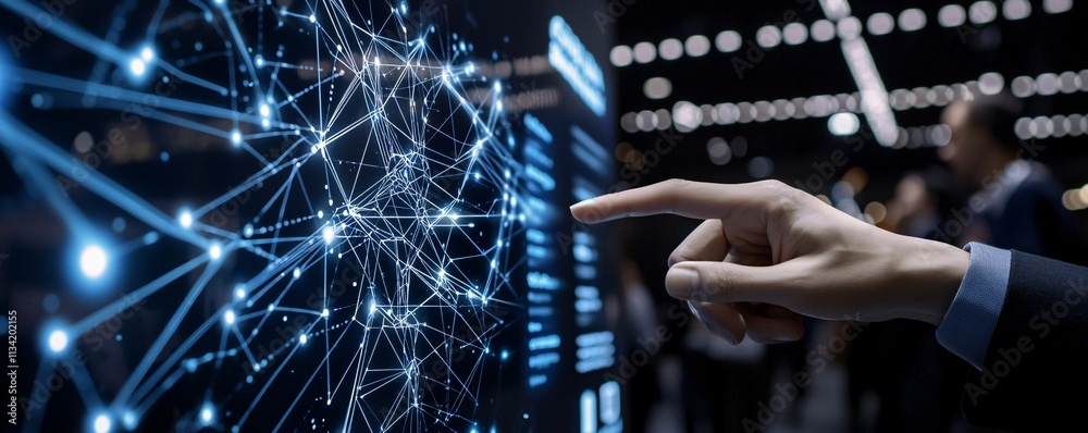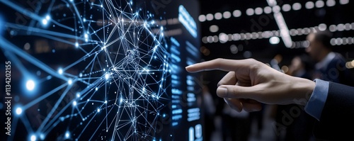Wall mural ai-powered robotic arm interacting with a touchscreen display to demonstrate digital modernization s - Wall murals Wall mural ai-powered robotic arm interacting with a touchscreen display to demonstrate digital modernization s - Wall murals