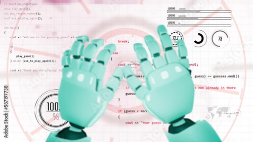 Ai robot chatbot hands typing with hud interface code programming language background video animatioWall mural