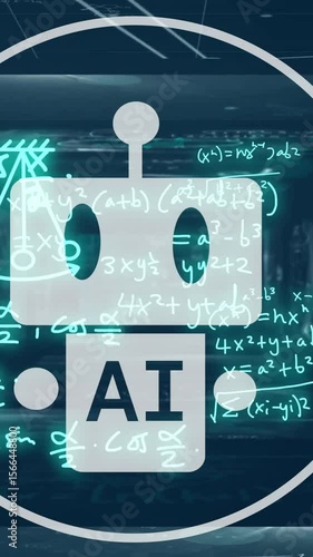 Wall mural ai robot icon and mathematical equations animation over dark futuristic background