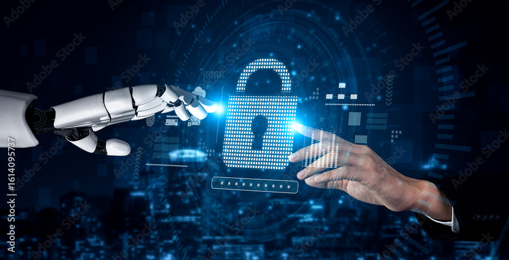 Wall mural : Ai-secured system demonstrating multi-layer encryption, identity protection, and password security w