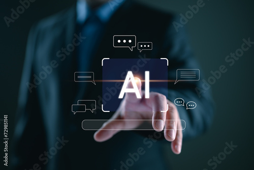 Wall mural ai tech, businessman show virtual graphic global internet connect robot chat with ai, artificial int - Wall murals Wall mural ai tech, businessman show virtual graphic global internet connect robot chat with ai, artificial int - Wall murals
