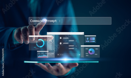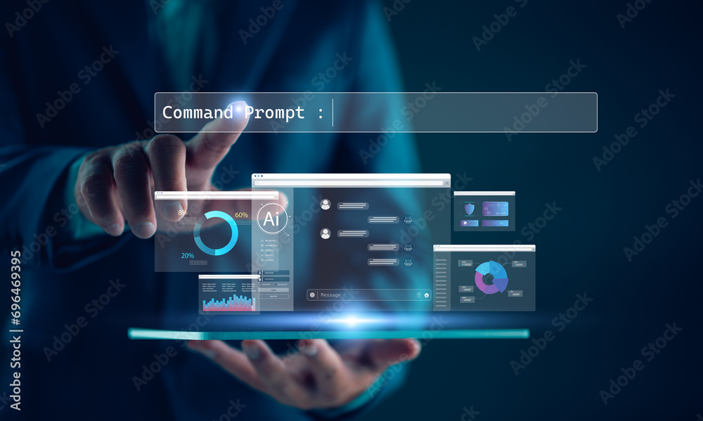 Wall mural ai tech, businessman show virtual graphic global internet connect with ai data analyst, artificial i - Wall murals Wall mural ai tech, businessman show virtual graphic global internet connect with ai data analyst, artificial i - Wall murals