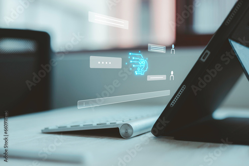 Wall mural ai technology, artificial intelligence. man using technology smart robot ai touching on big data net - Wall murals Wall mural ai technology, artificial intelligence. man using technology smart robot ai touching on big data net - Wall murals