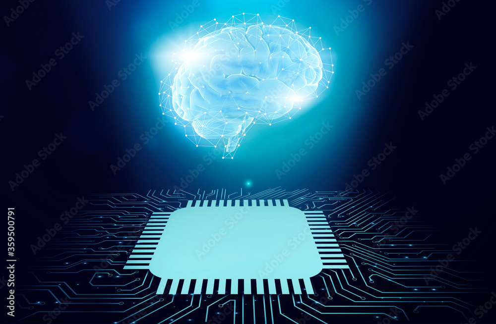 Wall mural ai. 3d rendering of gloving digital human brain with polygonal connections