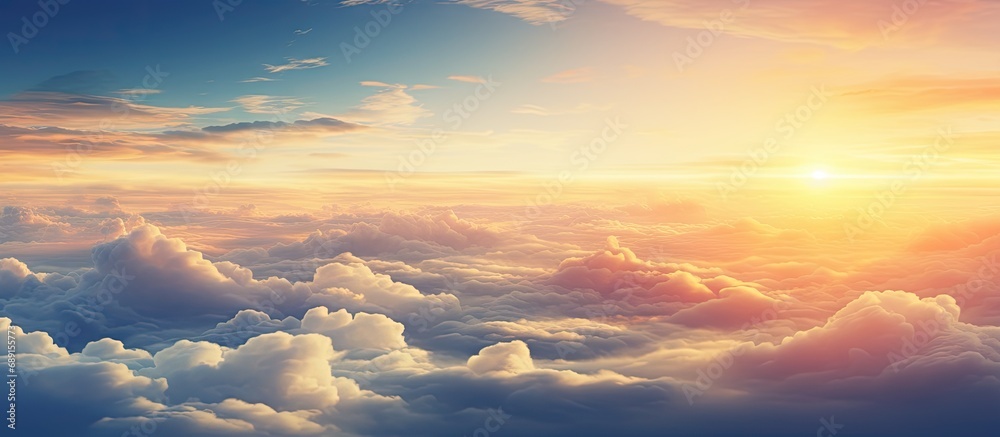 Aircraft viewpoint above clouds displaying breathtaking sunset copy space image place for adding texWall mural
